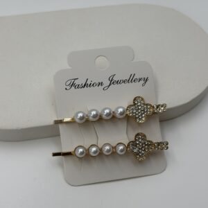 Zarif İnci ve Altın Düğme Tasarımlı Saç Klipsi