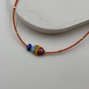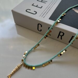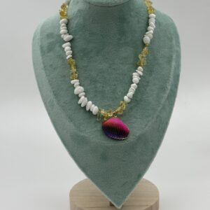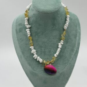 Beyaz ve Sarı Boncuklu Deniz Kabuklu Bohem Kolye