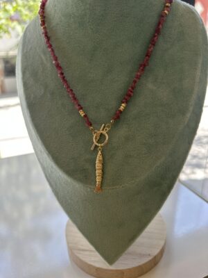 DOĞAL TAŞLI BALIK UÇLU ÇELİK KOLYE