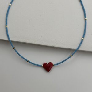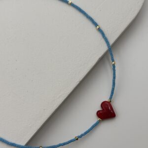 SERAMİK MAVİ BONCUKLU KALP KOLYE