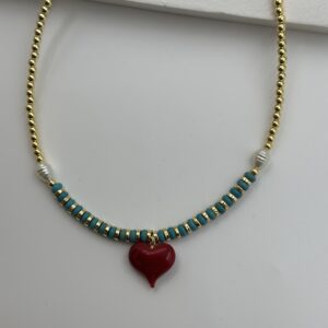 YEŞİL-MERCAN KALP CHARM BONCUK KOLYE