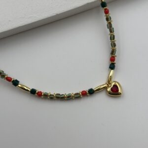 YEŞİL-MERCAN KALP CHARM BONCUK KOLYE