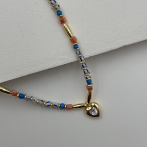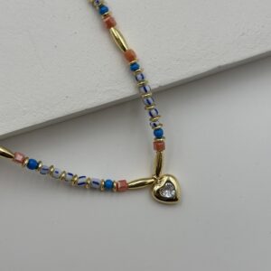 ZİRKON KALP DETAYLI RENKLİ BONCUK KOLYE