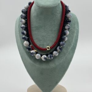 ÜÇ SIRALI EL YAPIMI RENKLİ TAŞ KOLYE