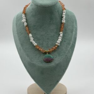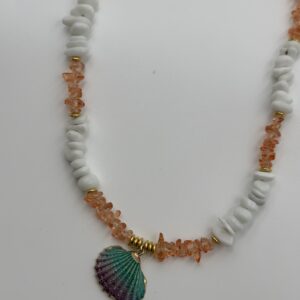 Turuncu Doğal Taşlı Renkli Deniz Kabuklu Kolye