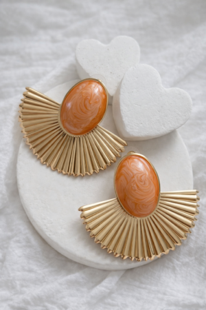 GEOMETRİK TURUNCU TAŞLI ÇELİK KÜPE