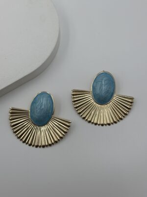 GEOMETRİK MAVİ TAŞLI ÇELİK KÜPE