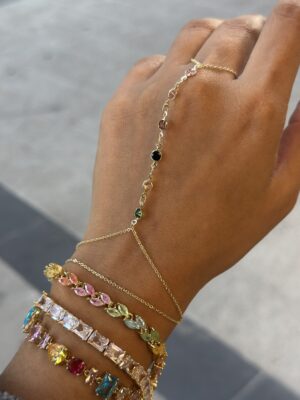 PASTEL RENK TAŞ DETAYLI GOLD ŞAHMERAN