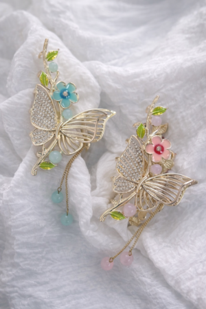 PEMBE TAŞLI ÇİÇEK&KELEBEK TOKA