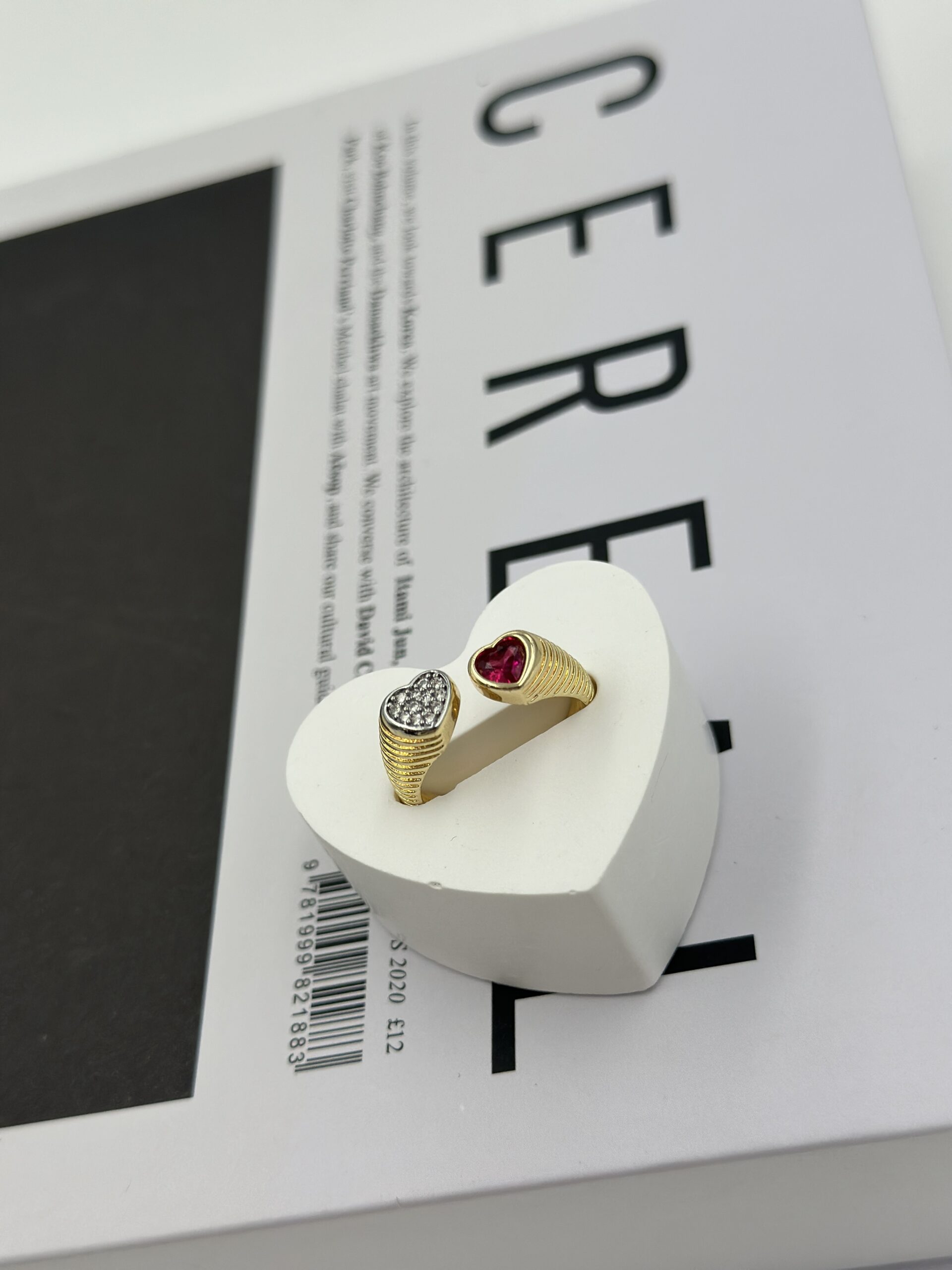 İkili Kalp Işıltısı Gold Çelik Yüzük